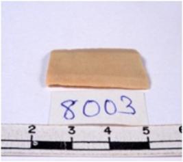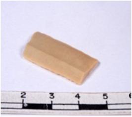 | Description / विवरण | A fragment of a rectangular shaped chert blade showing dorsal sides with sharp edges having smooth surface and triangular section. |