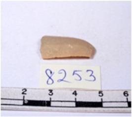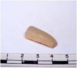 | Description / विवरण | A fragment of a rectangular shaped chert blade showing dorsal sides with sharp edges having smooth surface and triangular section. |
