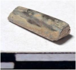 | Description / विवरण | A fragment of a stone drill bit, oval in section, broken from both ends of smooth surface. |
