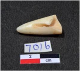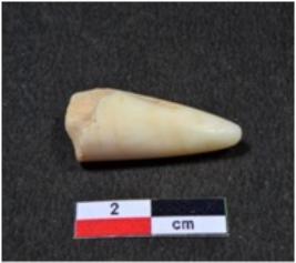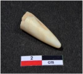 | Description / विवरण | A small sized shell point showing conical in shaped, pointed on one end, broken upper part, having glossy surface. |