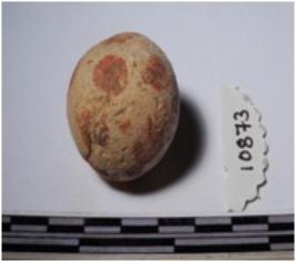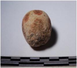 | Description / विवरण | A terracotta round in shaped sling ball of smooth surface. |