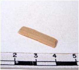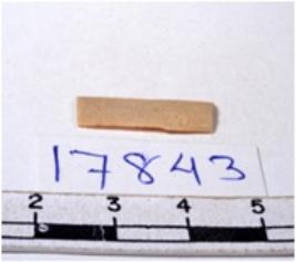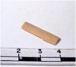 | Description / विवरण | A fragment of a rectangular shaped chert blade showing dorsal sides with sharp edges having smooth surface and triangular section. |