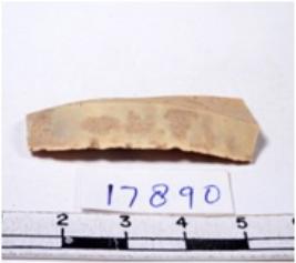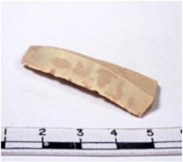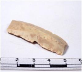 | Description / विवरण | A fragment of a rectangular shaped chert blade showing dorsal sides with sharp cutting edges having smooth surface and triangular section. |