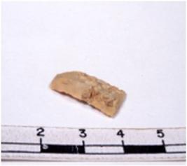 | Description / विवरण | A fragment of a rectangular shaped chert blade showing dorsal sides with sharp cutting edges having smooth surface and triangular section. |