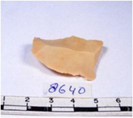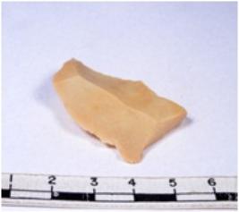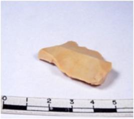 | Description / विवरण | A fragment of a rectangular shaped chert blade showing dorsal sides with sharp cutting edges having smooth surface and triangular section. |