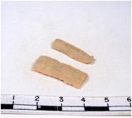 | Description / विवरण | A fragment of a rectangular shaped chert blade showing dorsal sides with sharp edges having smooth surface and triangular section. |