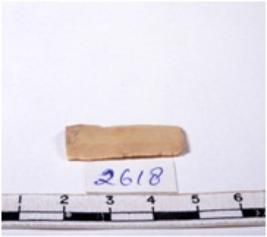 | Description / विवरण | A fragment of a rectangular shaped chert blade showing dorsal sides with sharp edges having smooth surface and triangular section. |