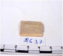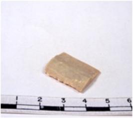 | Description / विवरण | A fragment of a rectangular shaped chert blade showing parallel sides with sharp edges and uneven section. |