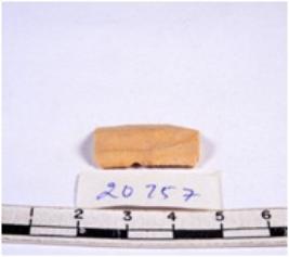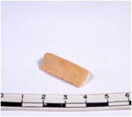 | Description / विवरण | A fragment of a rectangular shaped chert blade showing dorsal sides with sharp cutting edges having smooth surface and triangular section. |