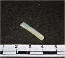 | Description / विवरण | A fragment of a rectangular shaped chalcedony blade showing dorsal sides with sharp cutting edges having smooth surface and triangular section. |
