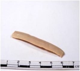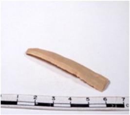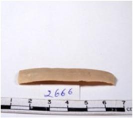 | Description / विवरण | A fragment of a rectangular shaped chert blade showing dorsal sides with sharp cutting edges having smooth surface and triangular section. |