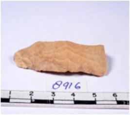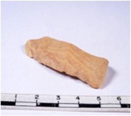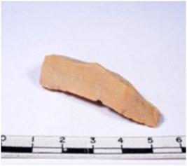 | Description / विवरण | A fragment of a rectangular shaped chert blade showing dorsal sides with sharp edges having smooth surface and triangular section. |