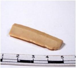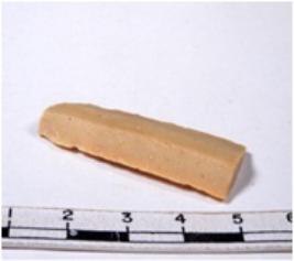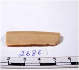 | Description / विवरण | A fragment of a rectangular shaped chert blade showing dorsal sides with sharp edges having smooth surface and triangular section. |