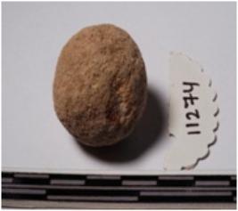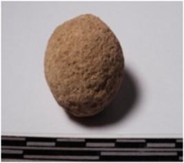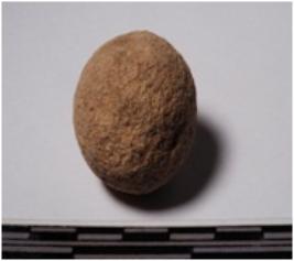 | Description / विवरण | A terracotta round in shape sling ball of smooth surface. |