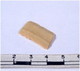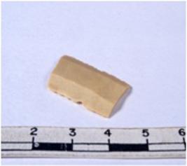 | Description / विवरण | A fragment of a rectangular shaped chert blade showing dorsal sides with sharp edges having smooth surface and triangular section. |