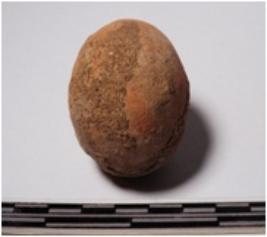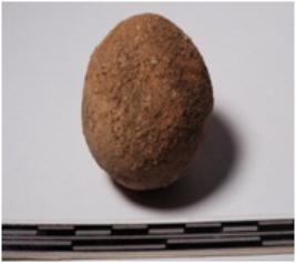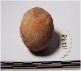 | Description / विवरण | A terracotta round in shape sling ball of smooth surface. |