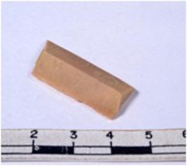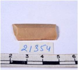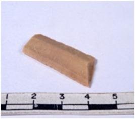 | Description / विवरण | A fragment of a rectangular shaped chert blade showing dorsal sides with sharp edges having smooth surface and triangular section. |