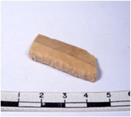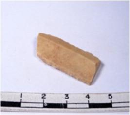 | Description / विवरण | A fragment of a rectangular shaped chert blade showing parallel sides with sharp cutting edges having smooth surface and triangular section. |