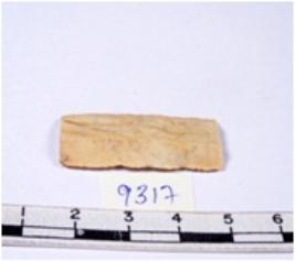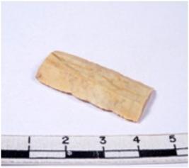 | Description / विवरण | A fragment of a rectangular shaped chert blade showing parallel sides with sharp edges having smooth surface and uneven section. |