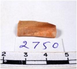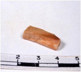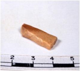 | Description / विवरण | A fragment of a rectangular shaped chert blade showing dorsal sides with sharp edges having smooth surface and uneven section. |