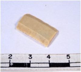 | Description / विवरण | A fragment of a rectangular shaped chert blade showing parallel sides with sharp edges having smooth surface and uneven section. |