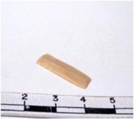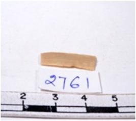 | Description / विवरण | A fragment of a rectangular shaped chert blade showing dorsal sides with sharp edges having smooth surface and triangular section. |