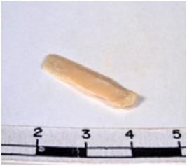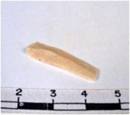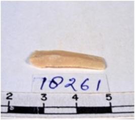 | Description / विवरण | A fragment of a rectangular shaped chert blade showing parallel sides with sharp edges having smooth surface and uneven section. |