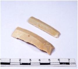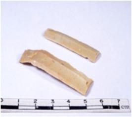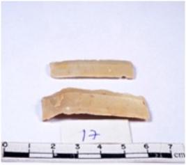 | Description / विवरण | A fragment of a rectangular shaped chert blade showing dorsal sides with sharp cutting edges having smooth surface and triangular section. |