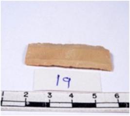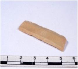 | Description / विवरण | A fragment of a rectangular shaped chert blade showing dorsal sides with sharp cutting edges having smooth surface and triangular section. |