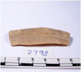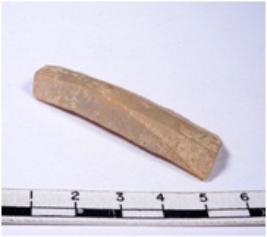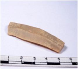 | Description / विवरण | A fragment of a rectangular shaped chert blade showing dorsal sides with sharp cutting edges having smooth surface and triangular section. |
