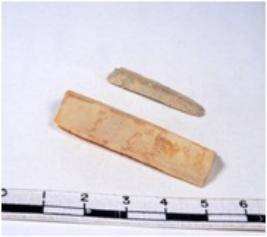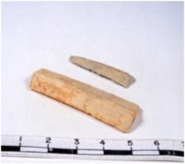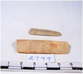 | Description / विवरण | A fragment of a rectangular shaped chert blade showing dorsal sides with sharp edges having smooth surface and triangular section. |