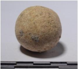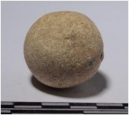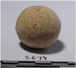 | Description / विवरण | A stone sling ball round in shape of rough surface. |