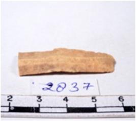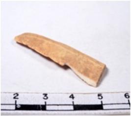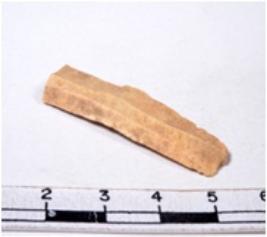 | Description / विवरण | A fragment of a rectangular shaped chert blade showing parallel sides with sharp cutting edges having smooth surface and triangular section. |