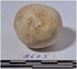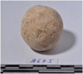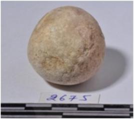 | Description / विवरण | A stone sling ball round in shape of rough surface. |
