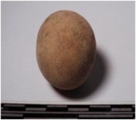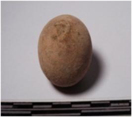 | Description / विवरण | A terracotta round in shape sling ball of smooth surface. |