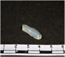 | Description / विवरण | A fragment of a rectangular shaped chalcedony blade showing dorsal sides with sharp cutting edges having smooth surface and triangular section. |