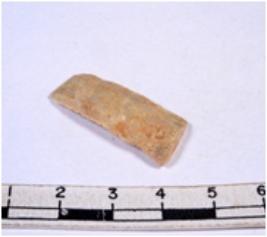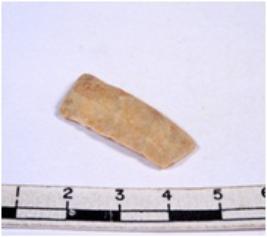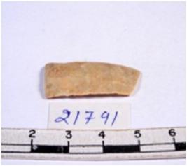 | Description / विवरण | A fragment of a rectangular shaped chert blade showing dorsal sides with sharp cutting edges having smooth surface and triangular section. |