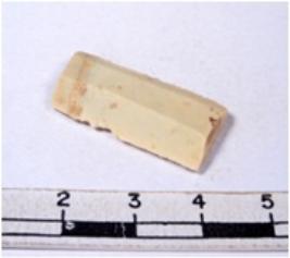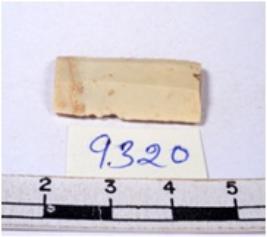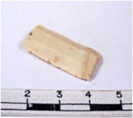 | Description / विवरण | A fragment of a rectangular shaped chert blade showing dorsal sides with sharp edges having smooth surface and triangular section. |