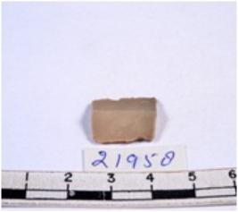 | Description / विवरण | A fragment of a rectangular shaped chert blade showing dorsal sides with sharp edges having smooth surface and triangular section. |