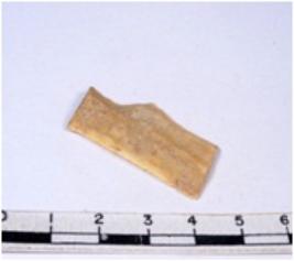 | Description / विवरण | A fragment of a rectangular shaped chert blade showing parallel sides with sharp edges having smooth surface and triangular section. |
