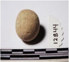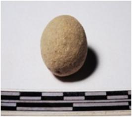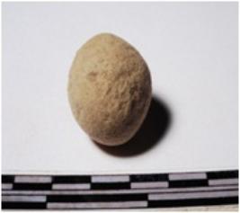 | Description / विवरण | A terracott round in shape sling ball of smooth surface. |