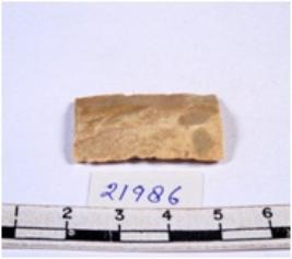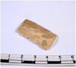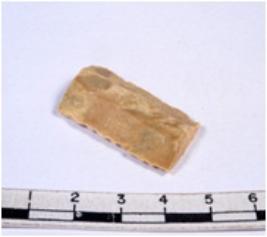 | Description / विवरण | A fragment of a rectangular shaped chert blade showing dorsal sides with sharp edges having smooth surface and triangular section. |
