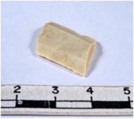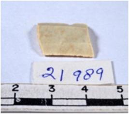 | Description / विवरण | A fragment of a rectangular shaped chert blade showing parallel sides with sharp edges having smooth surface and triangular section. |
