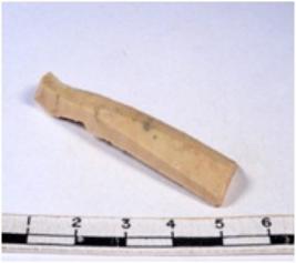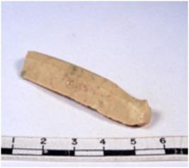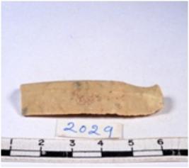 | Description / विवरण | A fragment of a rectangular shaped chert blade showing dorsal sides with sharp cutting edges having smooth surface and triangular section. |
