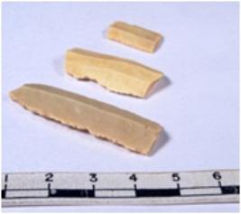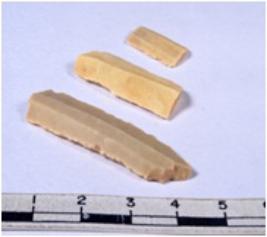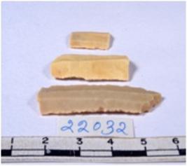 | Description / विवरण | A fragment of a rectangular shaped chert blade showing dorsal sides with sharp edges having smooth surface and triangular section. |