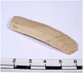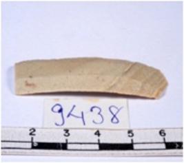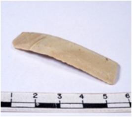 | Description / विवरण | A fragment of a rectangular shaped chert blade showing dorsal sides with sharp edges having smooth surface and triangular section. |
