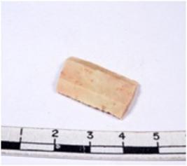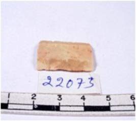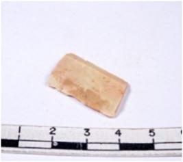 | Description / विवरण | A fragment of a rectangular shaped chert blade showing dorsal sides with sharp edges having smooth surface and triangular section. |