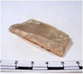 | Description / विवरण | A fragment of a rectangular shaped chert blade showing dorsal sides with sharp edges having smooth surface and triangular section. |