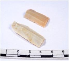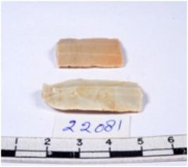 | Description / विवरण | A fragment of a rectangular shaped chert blade showing dorsal sides with sharp edges having smooth surface and triangular section. |