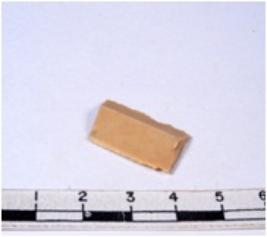 | Description / विवरण | A fragment of a rectangular shaped chert blade showing dorsal sides with sharp cutting edges having smooth surface and triangular section. |
